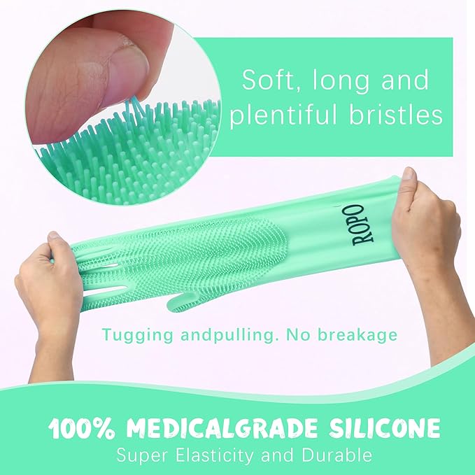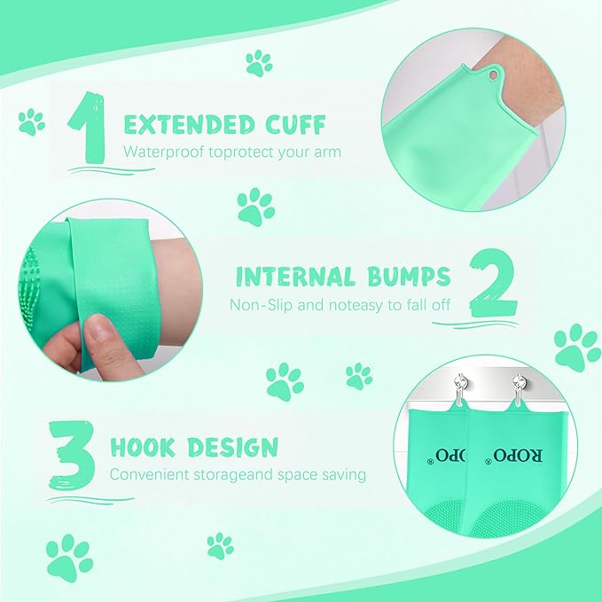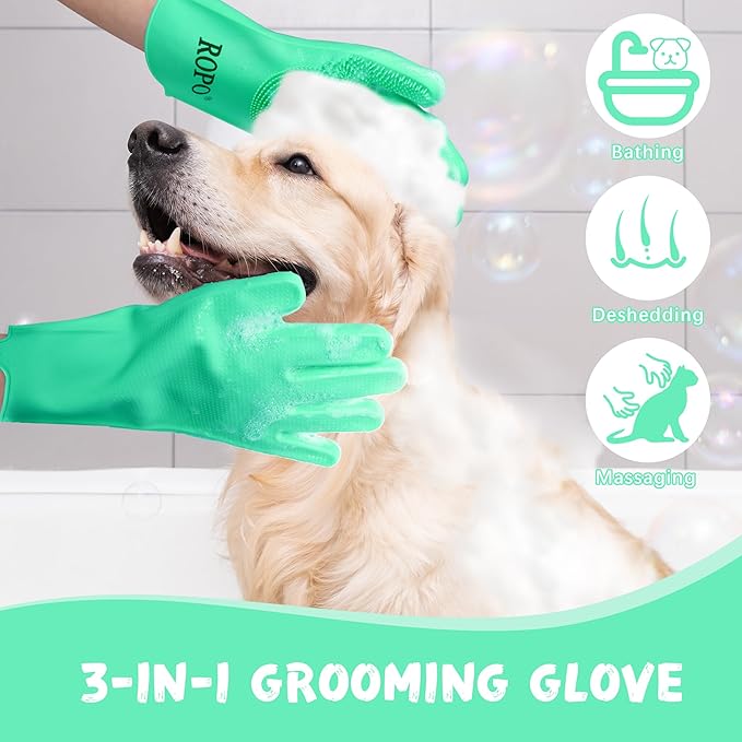 ROPO silicone gloves for pet grooming, multi-functional gloves for pet hair shedding, bathing, and massage (Green)