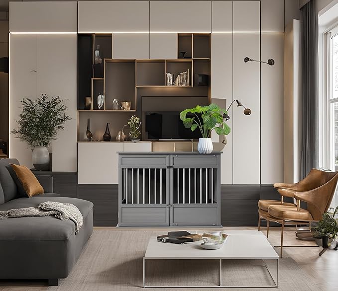 • [Durability & Style] Crafted from ECOFLEX, a robust wood-plastic composite, this large dog crate doubles as an elegant end table; blending seamlessly with your living room, bedroom, or family room decor