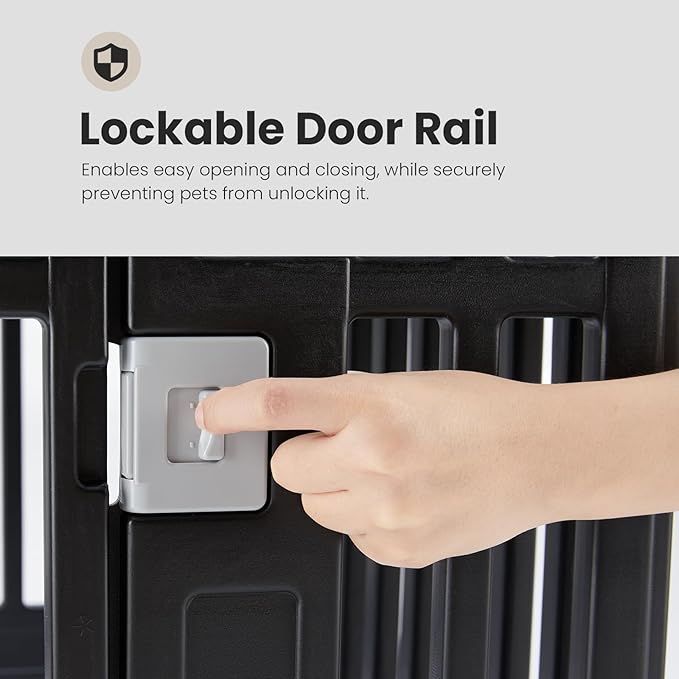 • Enhanced Safety and Durability: Thoughtful features like a sliding lock mechanism ensure the gate remains pet-proof, while the small door design allows pets to exit freely without requiring lifting. The 4cm spacing between bars prevents pets from sticking their heads through, enhancing safety. Constructed using advanced blow molding technology, the playpen boasts thicker, sturdier panels that resist deformation, ensuring long-term stability and durability.