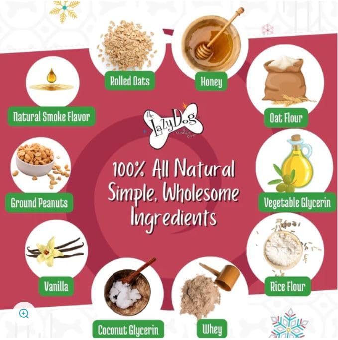 • The Lazy Dog Cookie Co. MuttCracker Peanut Butter Sweets, Holiday-inspired Natural Dog Treat - These soft and chewy gourmet dog cookies are rich in anti-oxidants and free from Wheat, Corn and Soy. Includes (1) 5 oz. bag.