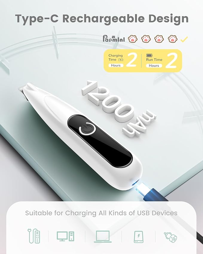 • 35 dB Ultra-low Noise: PAPMINI cat shaver adapts ultra-low noise technology, the working noise is less than 35 decibels.Protect your pet from stress and fear during the grooming process