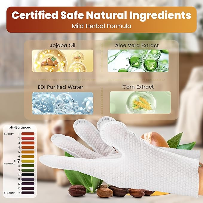 • 【Natural & Safe Formula, Lick-Safe】Cleaning wipes using plant extracts (Jojoba Oil,Didecyl Dimethyl Ammonium Chloride,Decyl Glucoside,Corn Extract,Aloe Extract,Edi Pure Water), pH-balanced, dermatologist-tested and pet safety certified. Pet glove wipes for cats lick-safe ingredients, deeply cleanse while nourishing fur and skin, relieves itchy skin, strengthens resistance, and keeps the coat smooth and shiny. please recognize PURIGREE pet cleaning gloves.