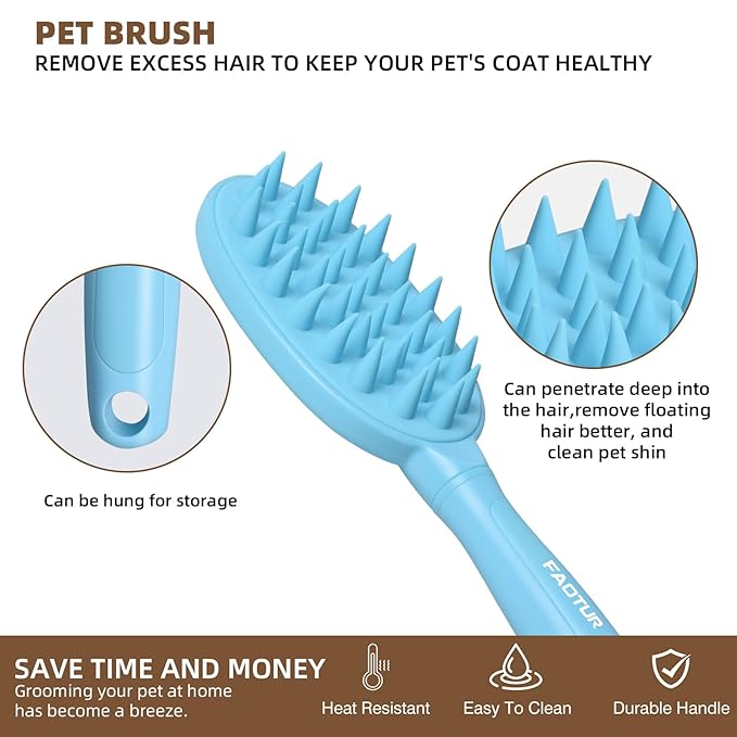 • Versatile Pet Grooming Tool: This silicone brush is suitable for long and short hair on medium to large dogs and cats, making bath time a breeze.