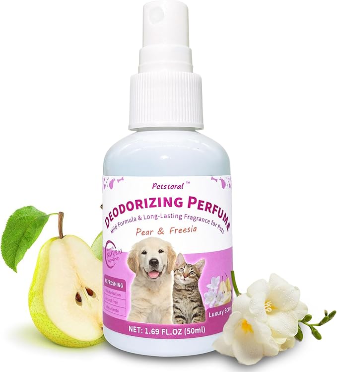 Deodorizing Perfume Spray for Pets, luxury Scent, Long-Lasting Fragrance (1.69 Fl Oz, Pear & Freesia)