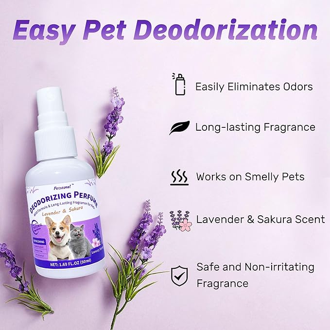 Deodorizing Perfume Spray for Pets, luxury Scent, Long-Lasting Fragrance (1.69 Fl Oz, Lavender & Sakaru)