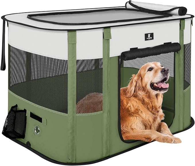 • 【Spacious & Comfort】Dog cage consists of 4 mesh side panels and a half mesh top, well ventilated; The playpen tent promotes comfort and security, providing dogs and cats a safe enclosed space for lounge and play. The pet playpen is also a ideal present as Christmas gifts for dog cat lovers