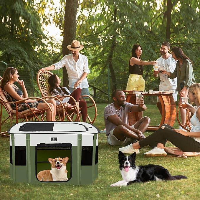 X-ZONE PET Dog Playpen, Puppy Cat Play Pen Portable Foldable Indoor/Outdoor Tent Crate Cage, Portable Pet Crate Medium Size Green 33"