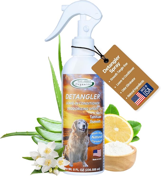 Detangler Spray - Tahitian Sunset Scent - Deodorizing Spray for Dogs and Horses, Leave-In Conditioner, Gently Releases Tangles, Softens Coats, Freshens Scent | Made in the USA | 8oz