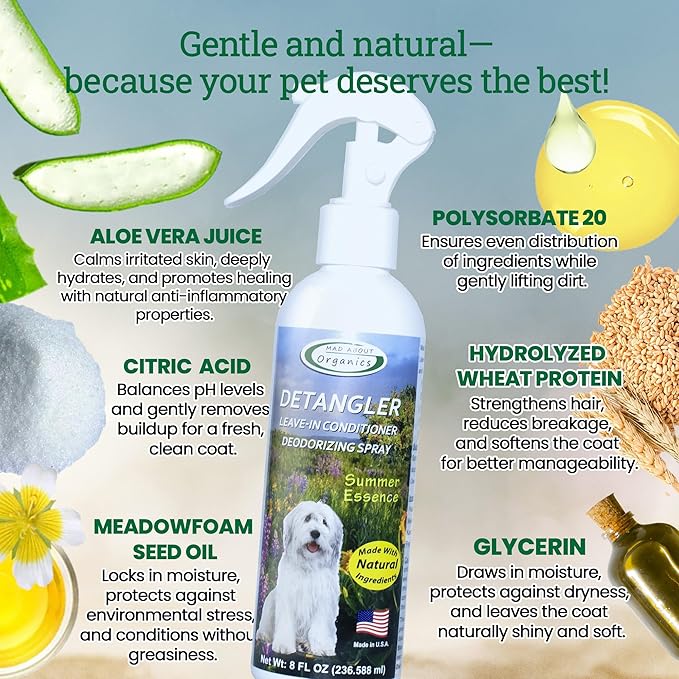 • Gentle for All Ages: Suitable for pets 4 weeks and older—including dogs and horses—our detangling spray is formulated without strong ingredients. An American-made, mild formula designed to care for and refresh coats between washes.