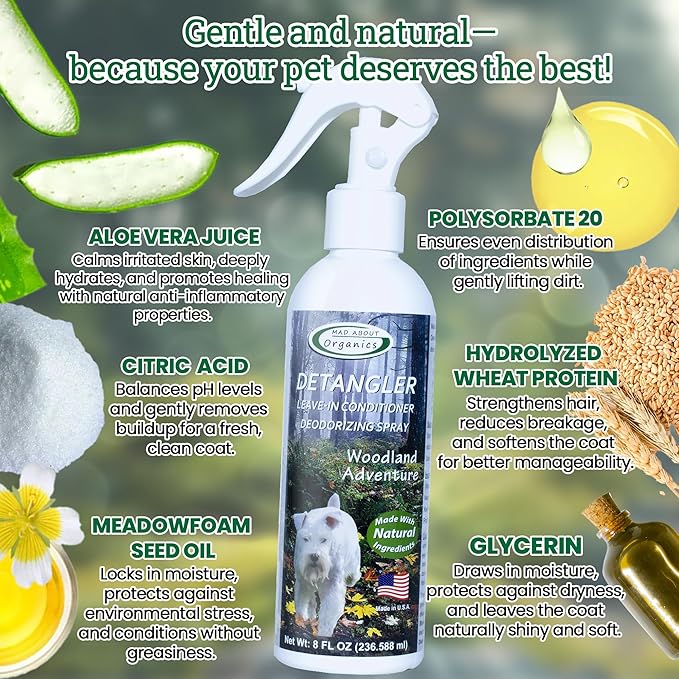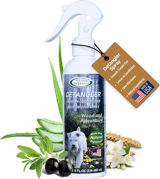 Detangler Spray - Woodland Adventure - Deodorizing Spray for Dogs and Horses, Leave-in Conditioner, Gently Releases Tangles, Softens Coats, Freshens Scent | Made in The USA | 8 oz