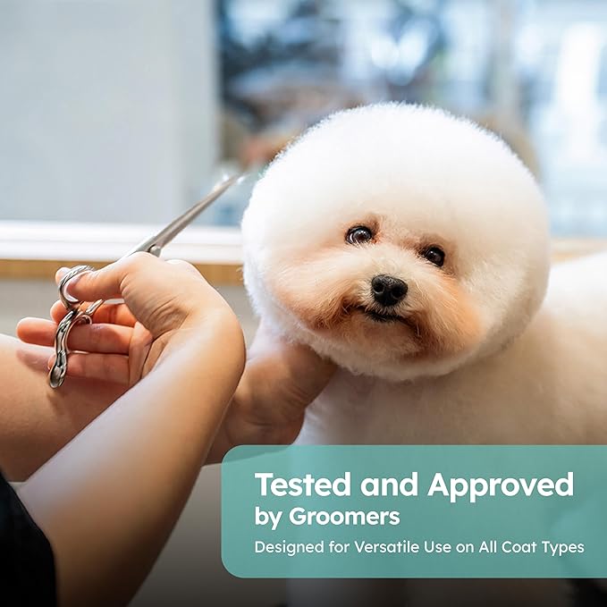 • 【Tested by Groomers with years of experience】Unlike mass-produced, low-quality alternatives, K9 Shears is a new brand backed by years of experience in crafting premium scissors. Our shears make every grooming session easier and stay sharp after multiple uses. You'll immediately notice the difference in performance. These shears are Ideal for adding volume and shaping fluffy styles around the head, face, legs, and tail — perfect for breeds like Bichon and Poodle.