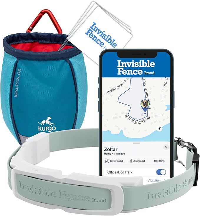 Invisible Fence GPS Dog Fence & Tracking Collar Bundle with Training Flags (White) & Treat Bag (Blue), Wireless GPS Tracker Collar, for Medium & Large Dogs, Waterproof - 1 Year Subscription Included