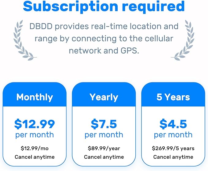 • Subscription Plan Needed: The Subscription provides monthly, 1 year package, 5 years package, starting from $4.5 /month (varies depending on subscription plan). No other hidden costs. The dog tracker works for Apple IOS products and Android