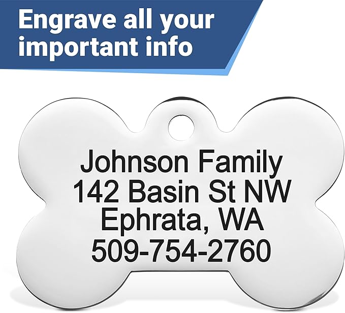 • Long-Lasting Protection: With scratch and rub-resistant laser engraving, your pet’s details remain clear, helping ensure their safe return from any unplanned escapades.