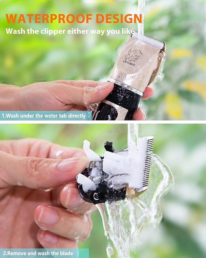 YABIFE Dog Clippers, Cordless Dog Grooming Kit, USB Rechargeable Electric Pets Hair Trimmers Shaver for Dogs, Cats and Small Animals, Whisper Quiet, Wet and Dry Use