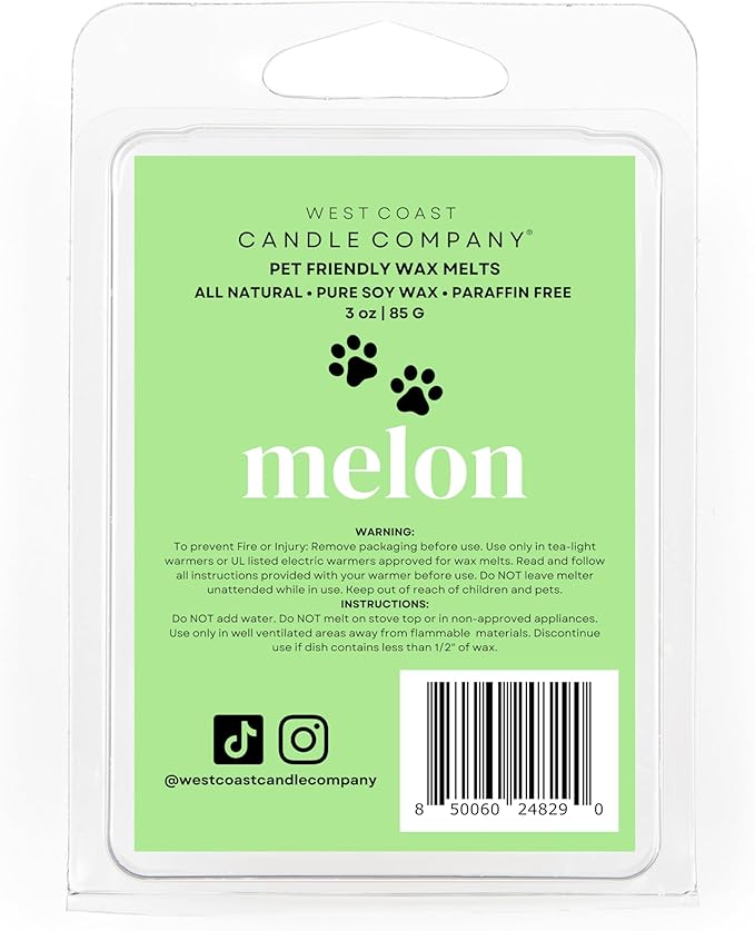 Pet Friendly Wax Melts | Pet Safe Wax Melts | All Natural Dog Safe Wax Melts | Non-Toxic Wax Melts | Pet Odor Eliminator | Pure Soy Wax Melts | Veterinarian Approved (Melon)