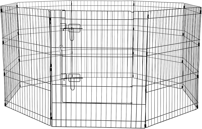 • 【Versatile Foldable Dog Exercise Pen】: This dog playpen is composed of 8 panels that can be arranged into a 24" side-length octagon, providing a spacious area for pets. The door opens all the way to the top, while the top cover can be zipped open for easy access by the owner.