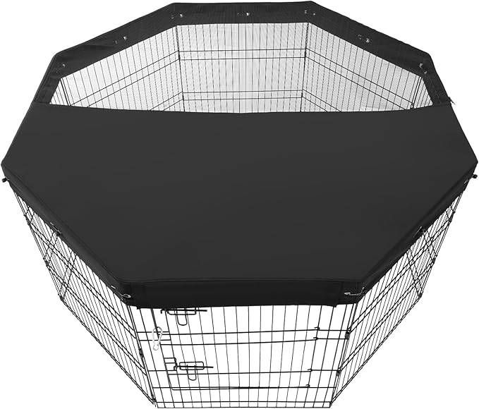• 【Dog Playpen with 600D Heavy-Duty Oxford Armor】:The top cover of our exercise pen is composed of half 600D heavy-duty Oxford fabric and half reinforced PVC mesh, which is scratch-resistant, easy to clean, and sun-resistant. It prevents pets from jumping out while ensuring ventilation and light penetration to reduce any sense of confinement.