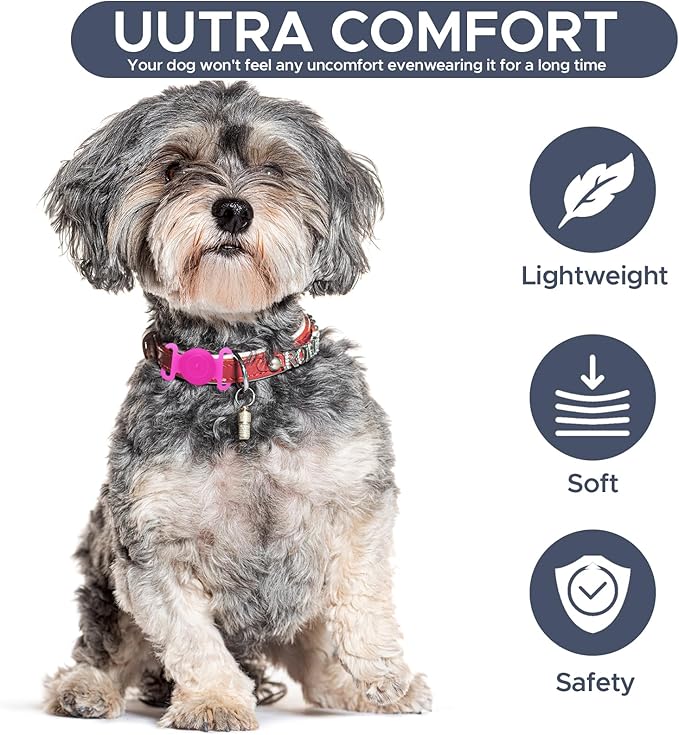 GPS Tracker for Dogs, Mini GPS Pet Tracker with Silicone Cover, IPX8 Waterproof GPS Tracker for Kids,No Monthly Fee,Work with Apple Find My(iOS Only),Dog Tracker Finder Tracker Pets(YPink-L)