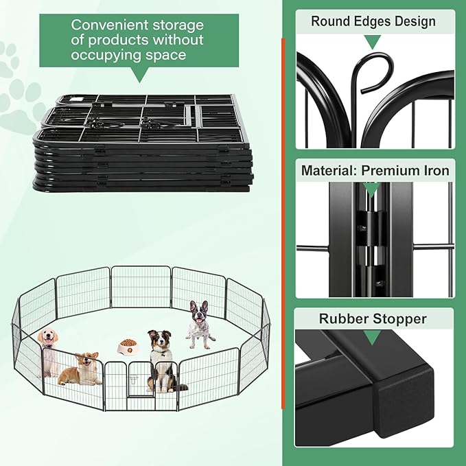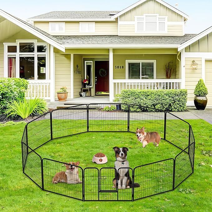 • 🐕【Easy to Install】This dog playpen is a must have for any dog lovers. Quality of our pet playpen constructed with simple assembly instructions will set up in minutes. Our puppy playpen assembles and comes down quickly which is very important as you don't want to be wasting tons of time while enjoying time off. Dog Playpen Dog Pen Dog Fence Puppy Playpen