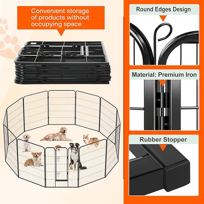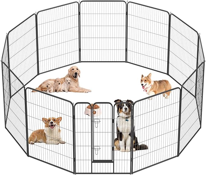• 🐕【Easy to Install】This dog playpen is a must have for any dog lovers. Quality of our pet playpen constructed with simple assembly instructions will set up in minutes. Our puppy playpen assembles and comes down quickly which is very important as you don't want to be wasting tons of time while enjoying time off. Dog Playpen Dog Pen Dog Fence Puppy Playpen