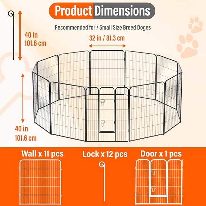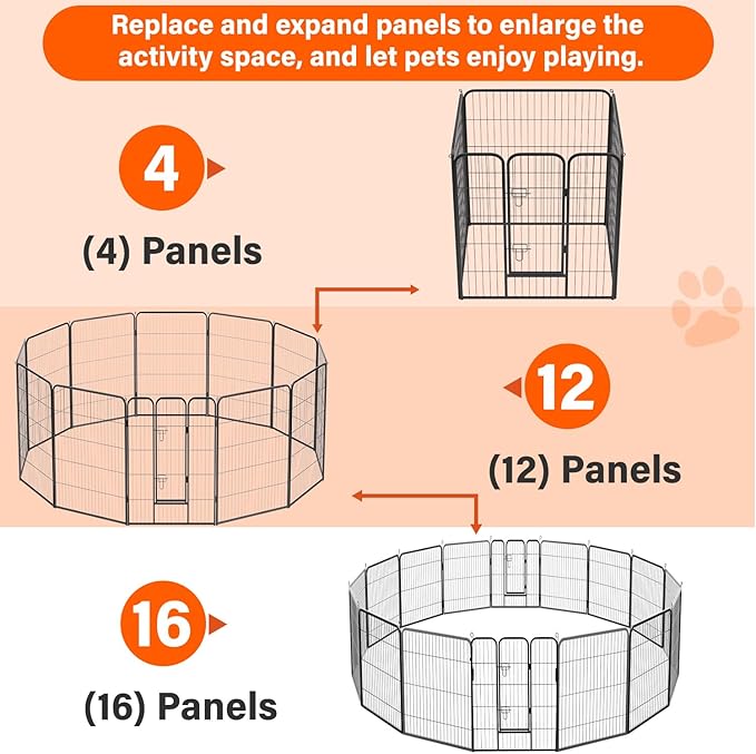 • 🐕【High Quality & Durable Material】Our dog playpen constructed from sturdy heavy duty rust resistant metal for increased longevity and durability. Durable puppy playpen great for indoor or outdoor use. Our pet playpen is your best choice! dog playpen puppy playpen pet playpen