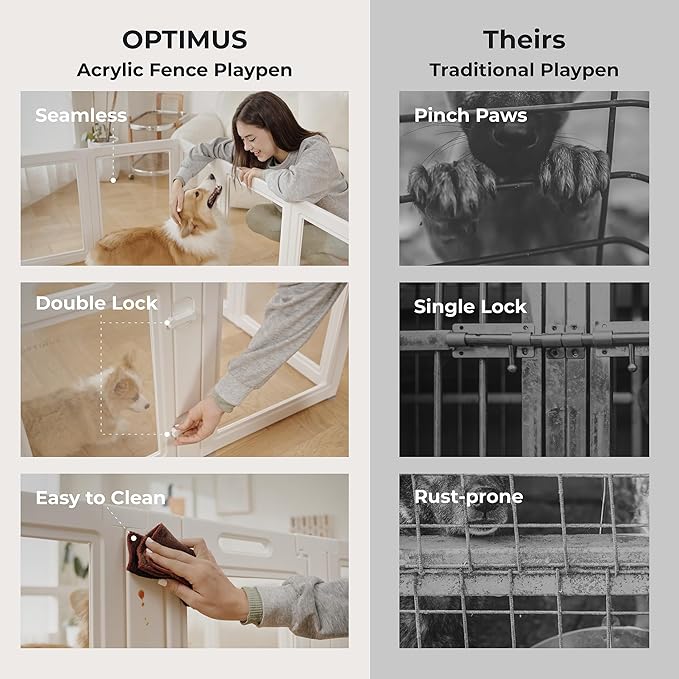 • Versatile Pet Enclosure: Optimus Design Studio's transparent dog playpen is perfect for indoor use, allowing you to keep your furry friend contained while maintaining visibility.