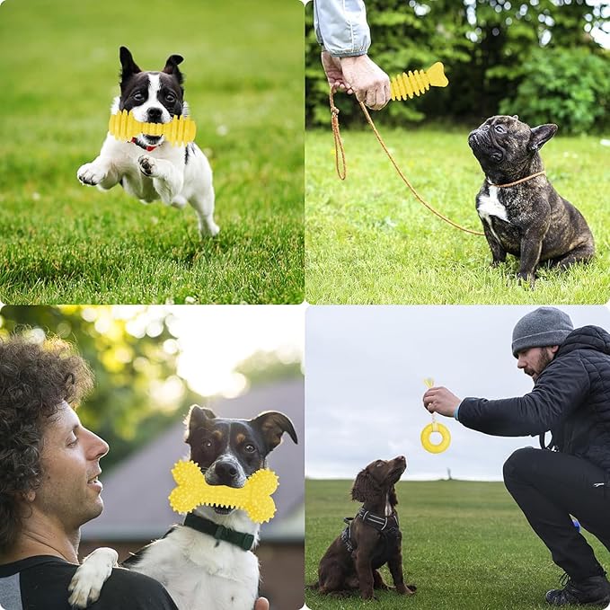 • Safe and Effective Puppy Teeth Cleaning: Made from 100% non-toxic natural rubber, these puppy chew toys are safe for your pet to chew on. Their uneven surface design thoroughly cleans your dog's teeth and massages gums for optimal dental care. Great for teething puppies!