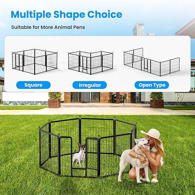 • 【Easy Assemble & DIY Shapes】Each panel is a separate piece. The panels could be assembled in just a few minutes without tools. You could DIY the dog pen to any shape you need, like square, rectangle, round, etc according to your house, garden or lawn.