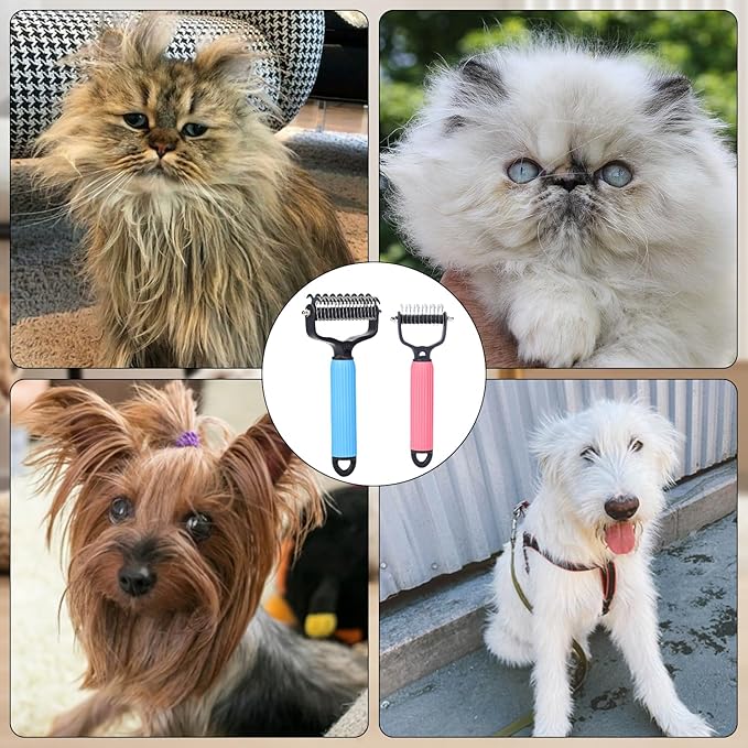 2PCS Pet Safe Dematting Comb for Dogs - Double Sided Dematting,Upgraded Pet Safe Dematting Comb for Dogs Cats, Deshedding Dog Brush Cat Dematting Tool,Dog Hair Mat Remover(Blue-Large + Pink-Small)