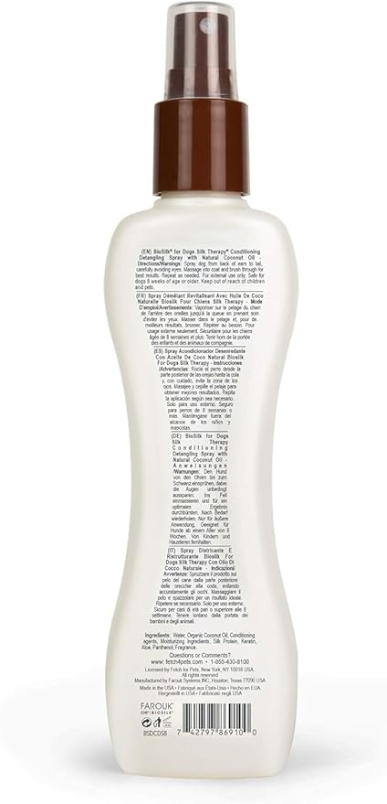 • EASY TO USE — Made with the same classic ingredients as the original BioSilk line for humans, this dematting spray for dogs sprays right onto your dog's coat, working through knots and tangles easily and effectively
