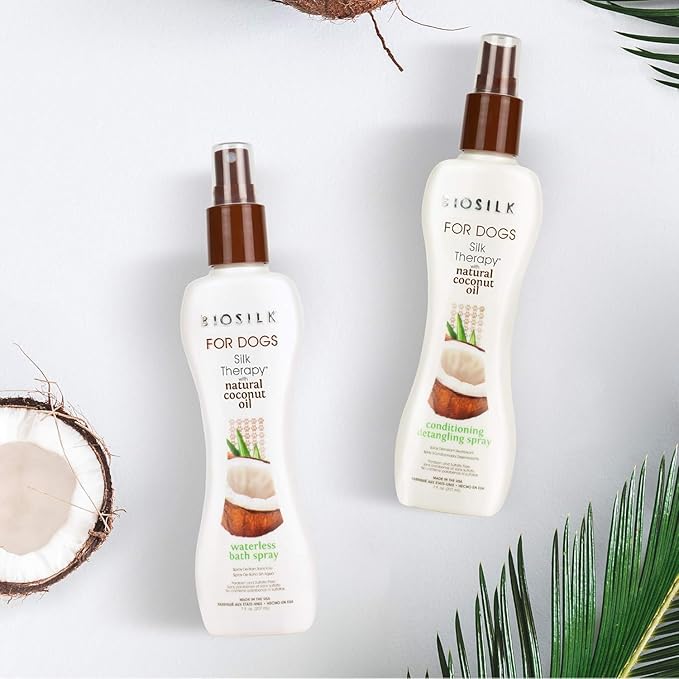 BioSilk Silk Therapy Conditioning Detangling Spray for Dogs with Natural Coconut Oil - Dog Matted Hair Detangler Conditioner for Dogs, Dematting Grooming Supplies, 7 Fl Oz - 2 Pack