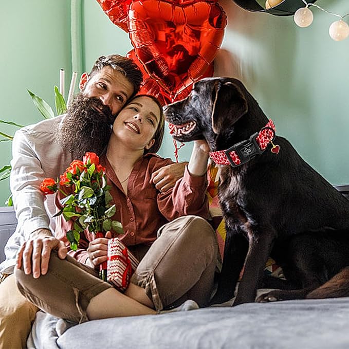 Elegant little tail Valentine's Day Dog Collar-Cute Red Heart Dog Collar for Medium Dogs, Female or Male Adjustable Cotton Pet Collar with Quick Release Buckle for Small Medium Large Dogs