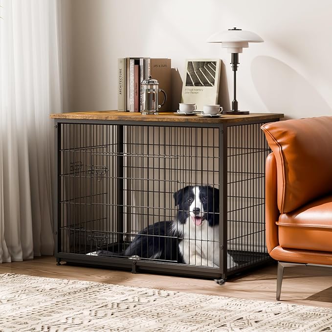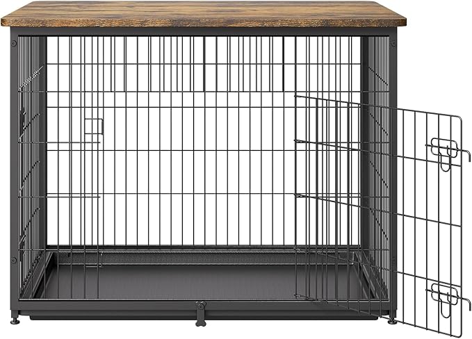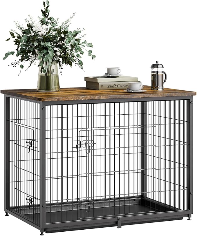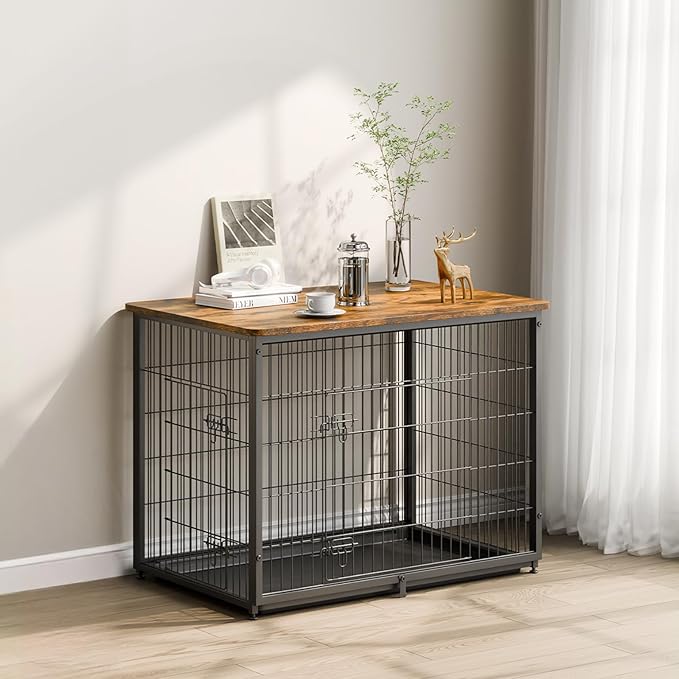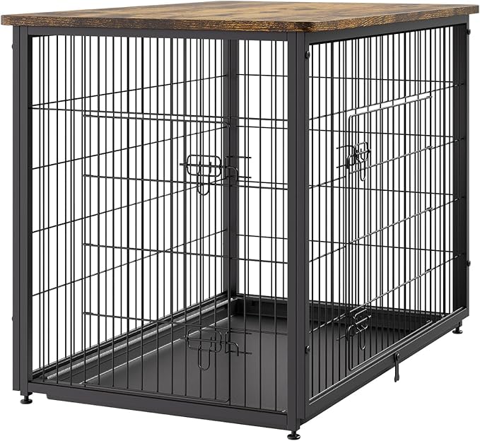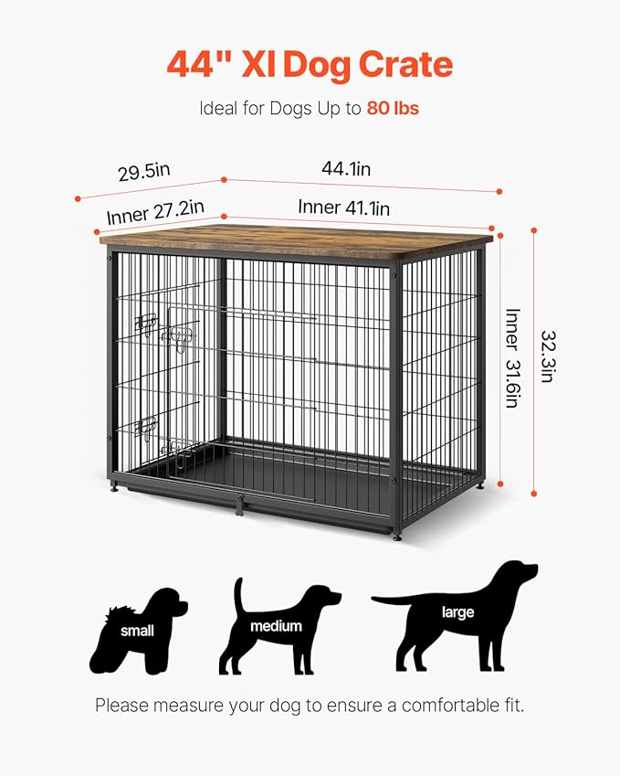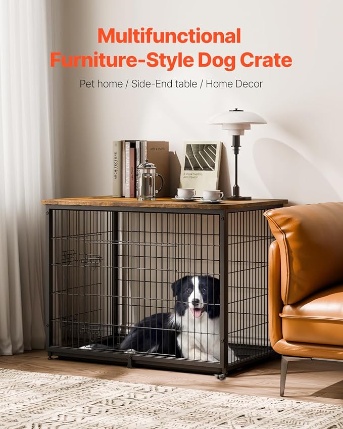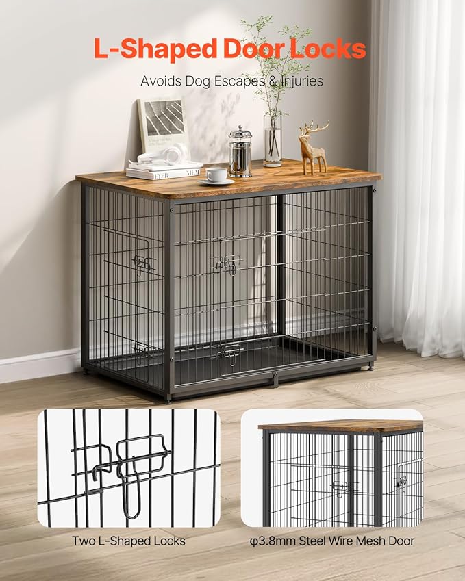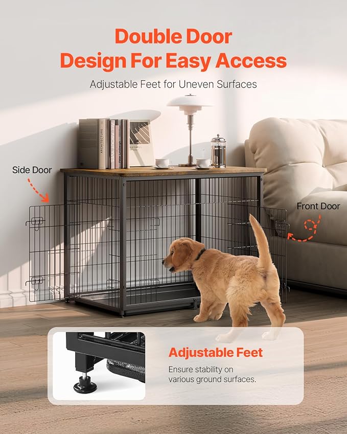 VEVOR 44in Dog Furniture Kennel - Decorative Wooden Dog Crate with Removable Tray, Double Doors, End Table for Small to Large Dogs