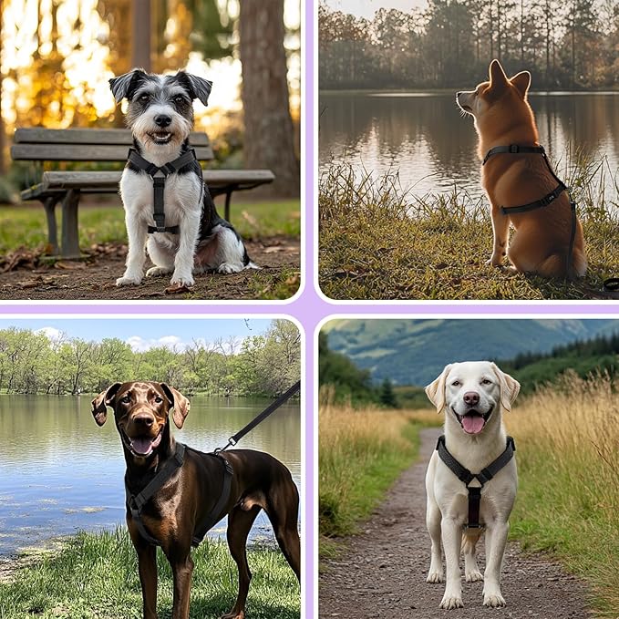 • Easy to Put on and Off: Adjustable harness set goes on easily attach it—no training needed, It helps you guide so the landing in softer, help you train them to stop pulling! or used on busy sidewalks, bike lanes, and crowded areas so you can keep close control of your dog.