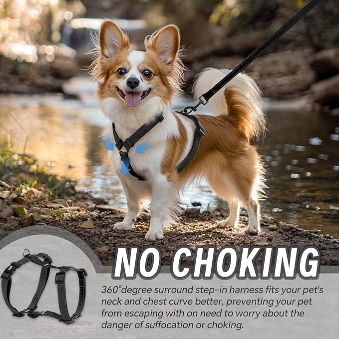 • Easy to Put on and Off: Adjustable harness set goes on easily attach it—no training needed, It helps you guide so the landing in softer, help you train them to stop pulling! or used on busy sidewalks, bike lanes, and crowded areas so you can keep close control of your dog.