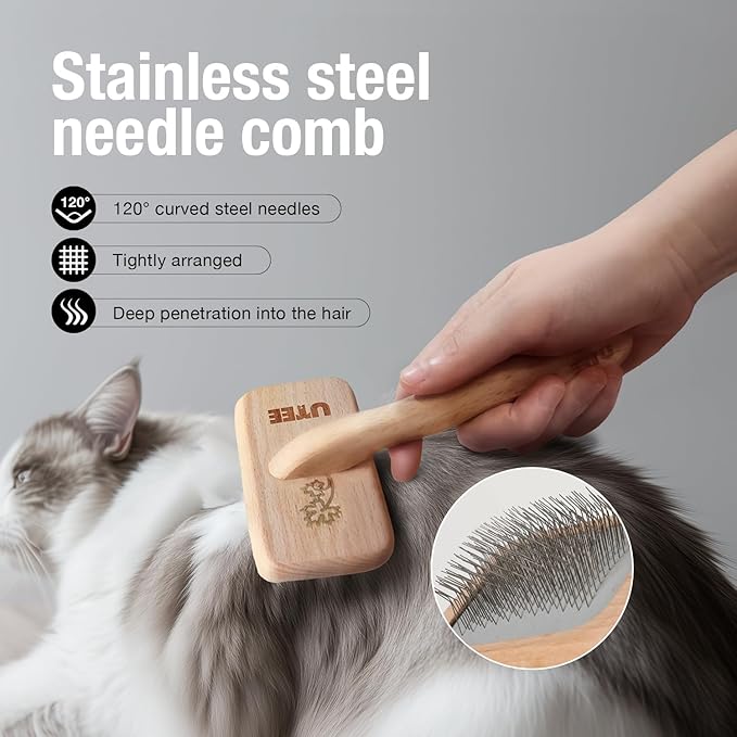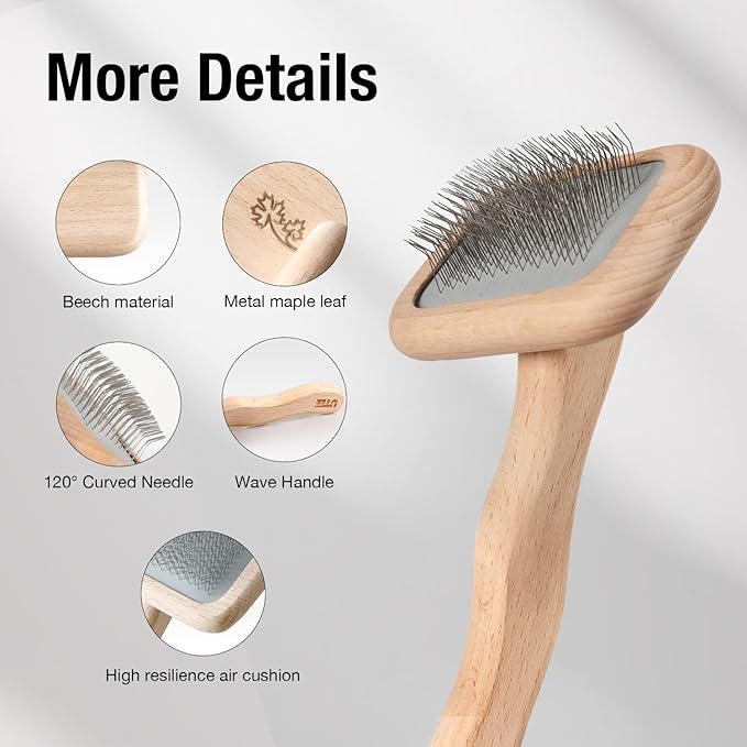 • Unique Design: The UTEE pet grooming brush, with its unique square design and natural beechwood texture, effortlessly blends into your minimalist home decor. Slicker brush is not just a grooming tool but a piece of art that adds a touch of nature and warmth to your pet's life in a minimalist living space.