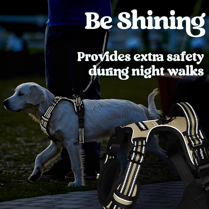 rabbitgoo Dog Harness for Large, No Pull Pet Harness with 3 Buckles, Adjustable Soft Padded Dog Vest with Instant Control Handle, Easy Walking Reflective Pet Vest for Extra Large Dogs, Beige, XL