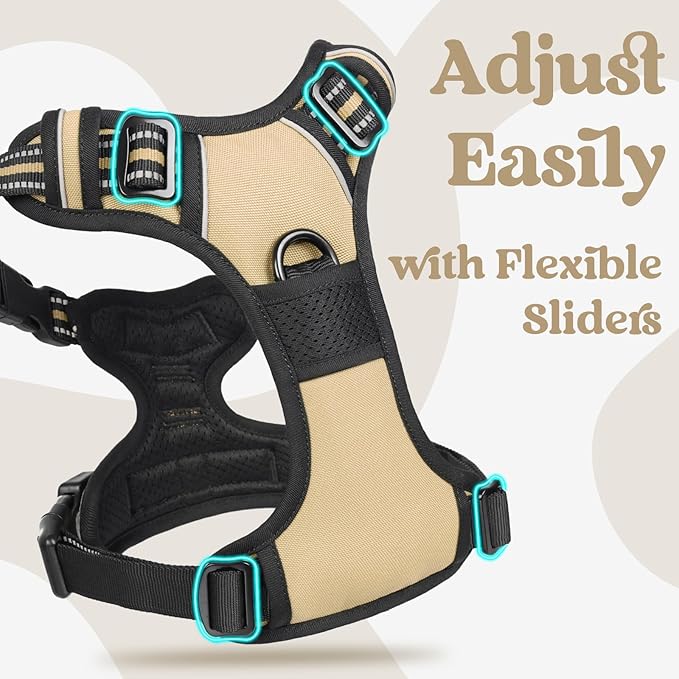 rabbitgoo Dog Harness for Large, No Pull Pet Harness with 3 Buckles, Adjustable Soft Padded Dog Vest with Instant Control Handle, Easy Walking Reflective Pet Vest for Large Dogs, Beige, L