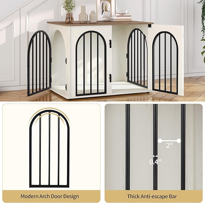 • Unique Arch Door: Our furniture dog crate adopts a novel arch design, which blends in with many modern furniture styles. The and elegant style of the arch creates a clean, tidy and comfortable living environment for you