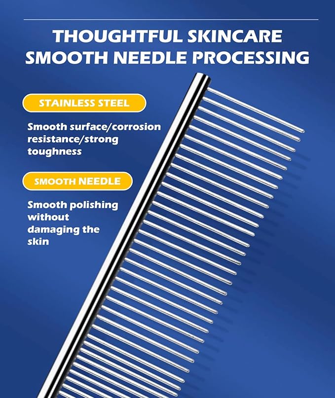 Dematting Combs with Rounded Ends - Stainless Steel Teeth for Removing Tangles and Knots - Professional Grooming Tool for Long and Short Haired Dogs, Cats and Other Pets - 7.28IN