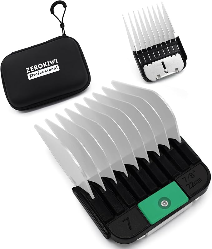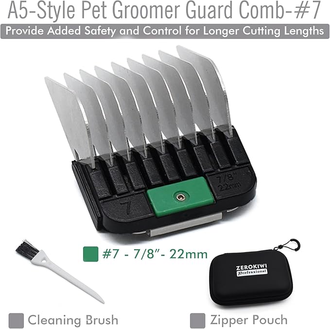 Professional A5 Style Animal Clipper Stainless Steel Color-Coded Snap-on Attachment Guard Guide Comb, 1/8"-1" Compatible with Wahl KM Series Oster A5 Andis Detachable Blade Pet Groomers (#7 - 7/8")