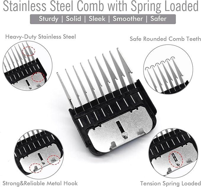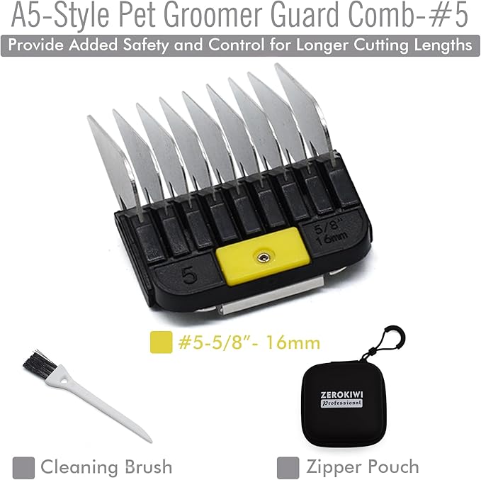 Professional A5 Style Animal Clipper Stainless Steel Color-Coded Snap-on Attachment Guard Guide Comb, 1/8"-1" Compatible with Wahl KM Series Oster A5 Andis Detachable Blade Pet Groomers (#5 - 5/8")