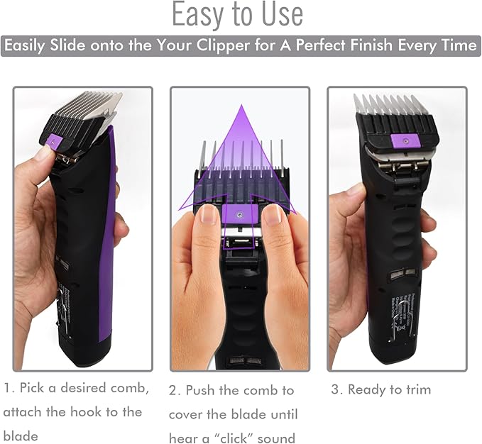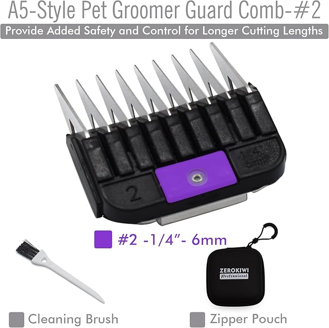 Professional A5 Style Animal Clipper Stainless Steel Color-Coded Snap-on Attachment Guard Guide Comb, 1/8"-1" Compatible with Wahl KM Series Oster A5 Andis Detachable Blade Pet Groomers (#2 - 1/4")