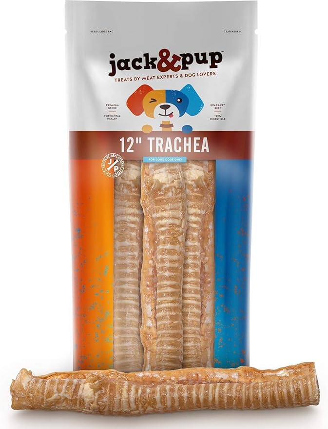 Jack&Pup 12" Beef Trachea for Dogs | All Natural Single Ingredient Dog Treat Dog Trachea Chews | Savory and Fun Treat for Dogs (3 Pack)