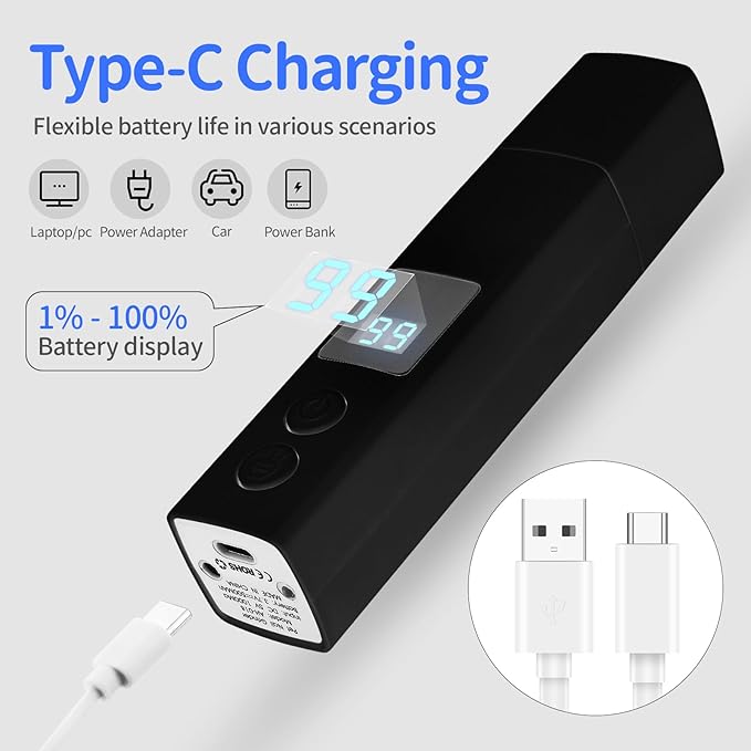 • 【Clear Display】: The built-in display of the dog nail clippers for large dogs can clearly display the current battery power (1%-99%) and speed gear. You only need to long press to switch the display, which is simple and convenient to operate. USB charging design, can be used continuously for 2 hours after charging for 3 hours, say goodbye to the trouble of traditional batteries.