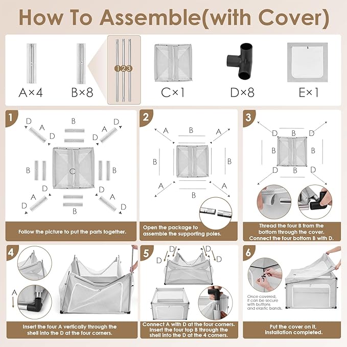 • EASY TO CARE:The dog pen can be spot cleaned, and the detachable outer cover is fully machine-washable for effortless cleaning. But we recommend using this dog playpen with washable mats or pee pads for added protection against stubborn stains caused by bodily fluids. This design ensures hygienic conditions and long-lasting use, making it a practical choice for pet owners.