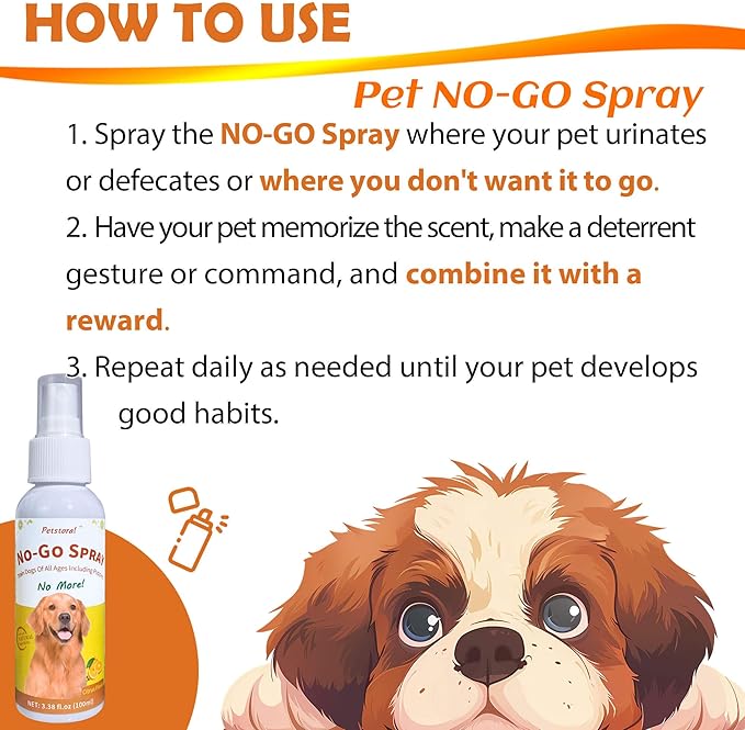 Pet No-Go & Puppy Potty Training Spray - Pet Deterrent Spray for Stop Chewing, Pee Here Corrector Spray for Dogs and Cats, 3.38 Fl Oz/100ml Kit