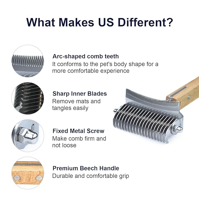• SAFE & ERGONOMIC DESIGN: Featuring rounded blade tips and an ergonomic handle, our comb ensures a safe and comfortable grooming experience for both you and your pet. Ideal for long-haired and short-haired breeds alike