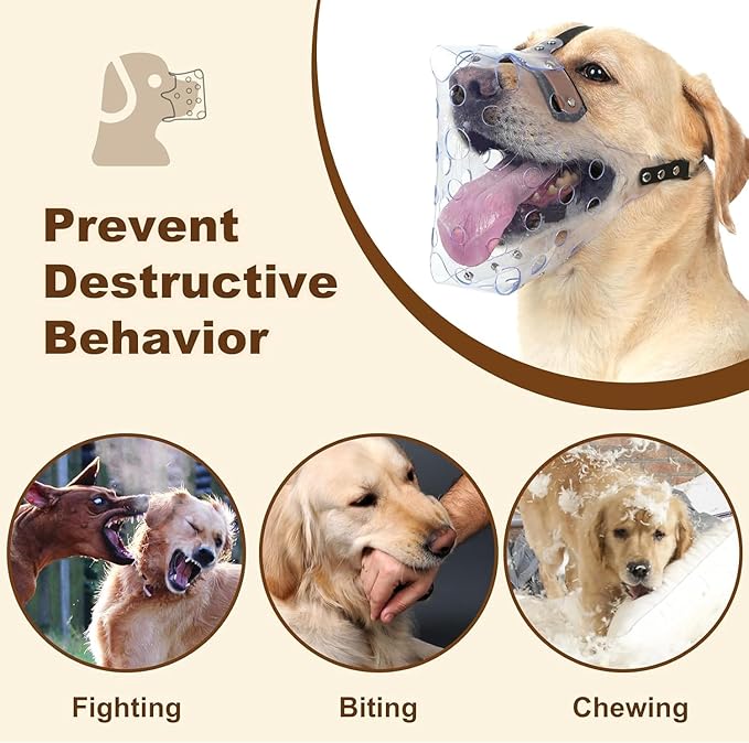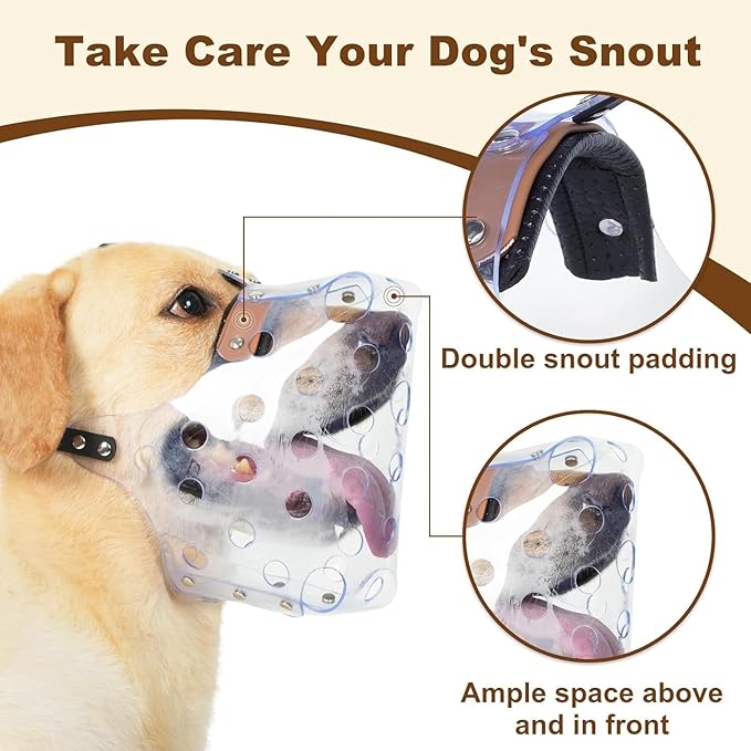 - See Through Dog Muzzle: With a clear PVC design, the muzzle for large sized dog offers an unobstructed view of your dog's expressions, letting you stay aware of their current state.